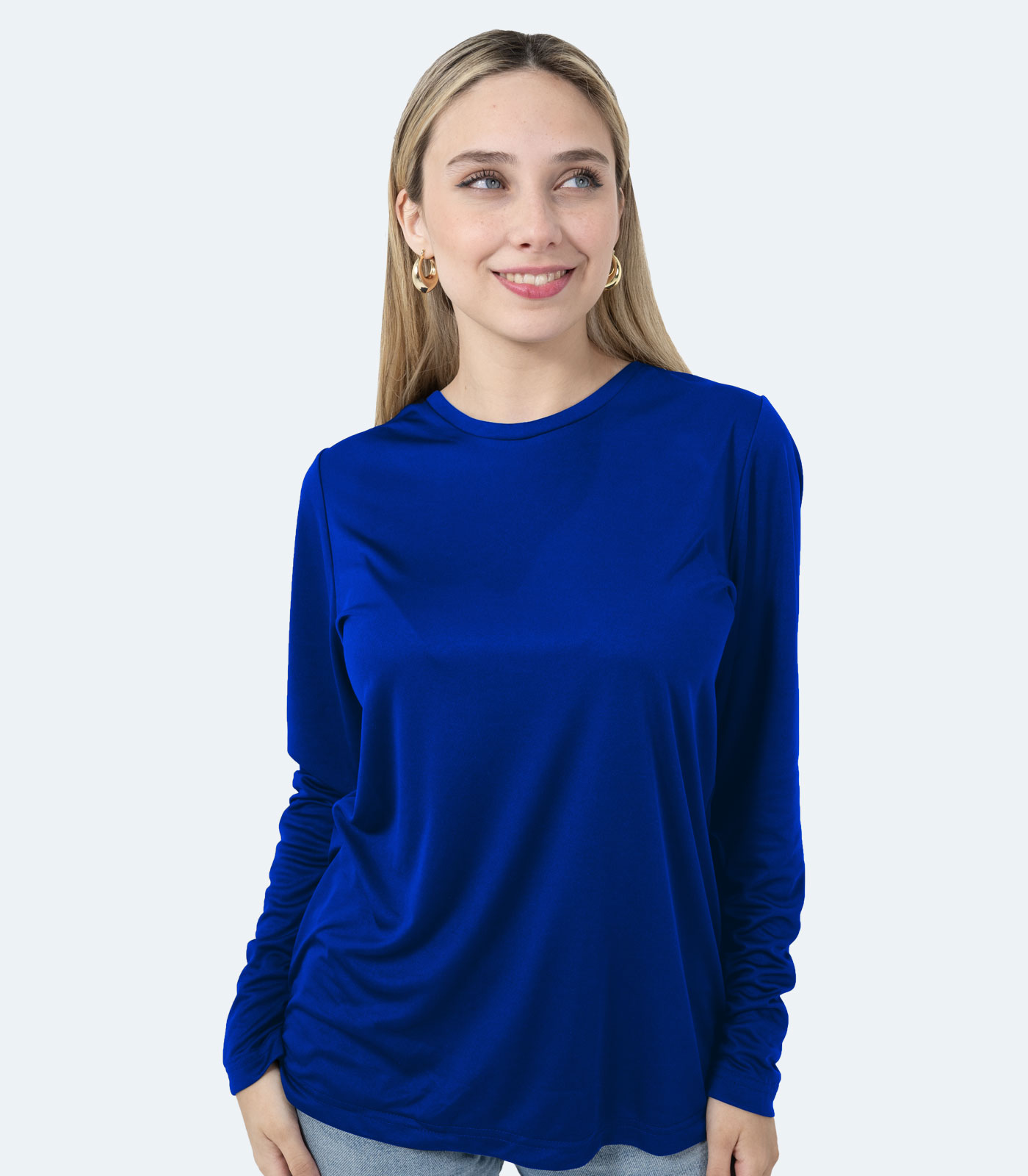 Stay fresh and comfortable all day with the Real Basics Women’s Royal Blue Long Sleeve Crew Neck Dry Fit T-Shirt—a high-performance and versatile essential perfect for sports, activewear, layering, and everyday casual wear. Made from 100% moisture-wicking polyester, this lightweight t-shirt is designed to keep sweat away, ensuring you stay dry and cool even during intense activities.